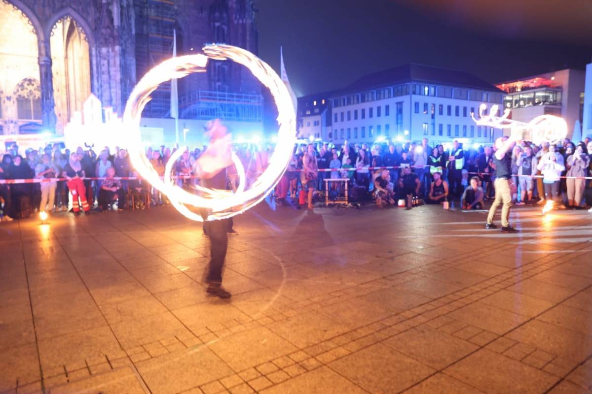 Zweiter Teil der Feierlichkeiten am 30.06.2023 war eine stimungsvolle Blaulichtparty auf dem Münsterplatz