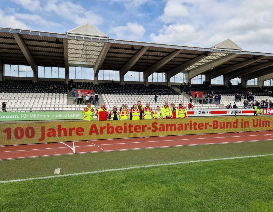 Mit einer Notärztin und 20 Mitarbeiter:innen sicherte der ASB Ulm am vergangenen Sonntag das Heimspiel des SSV Ulm 1846 gegen die Kickers Offenbach vor der Saison-Rekordkulisse mit 8432 Fans im Stadion. Mit dem Heimsieg haben die Spatzen die Tabellenführung zurückerobert und den Aufstieg wieder in der eigenen Hand. Dafür drücken wir fest die Daumen!